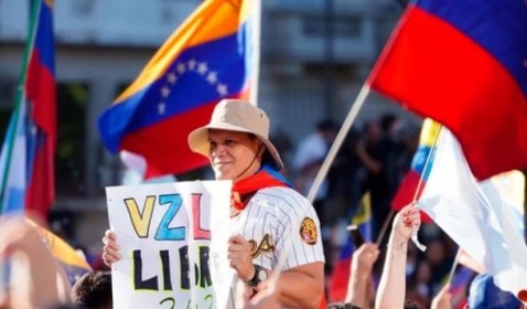 Venezolanos celebran en el Obelisco caída de Maduro