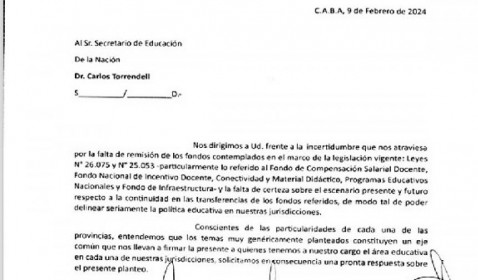 Ministros de Educación de provincias reclaman a Nación envío de fondos