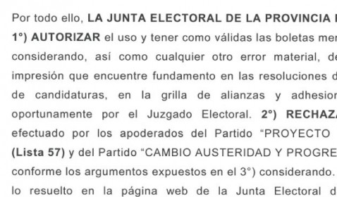 La Junta Electoral autorizó el uso de boletas con errores tipográficos