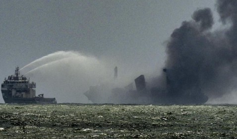 Playas de Sri Lanka reciben toneladas de plástico de un barco incendiado