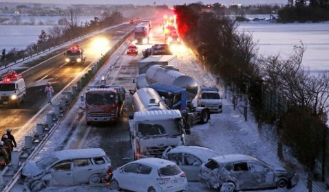 Accidente de tránsito en cadena involucra a 140 vehículos en Japón