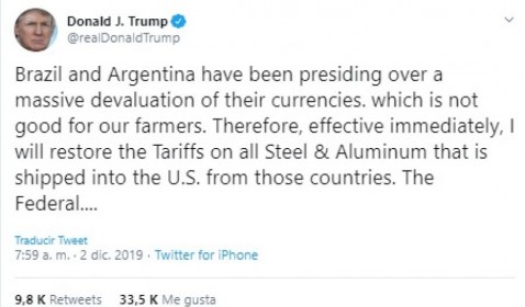 EEUU restituye aranceles al aluminio y acero por la devaluación del peso y el real