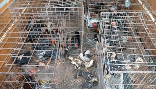 Maltrato animal: rescatan 80 gallos usados en riñas clandestinas